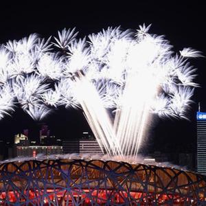 在第二十四屆冬季奧林匹克運動會開幕式上,焰火綻放在北京國家體育場上空(2022年2月4日攝)。