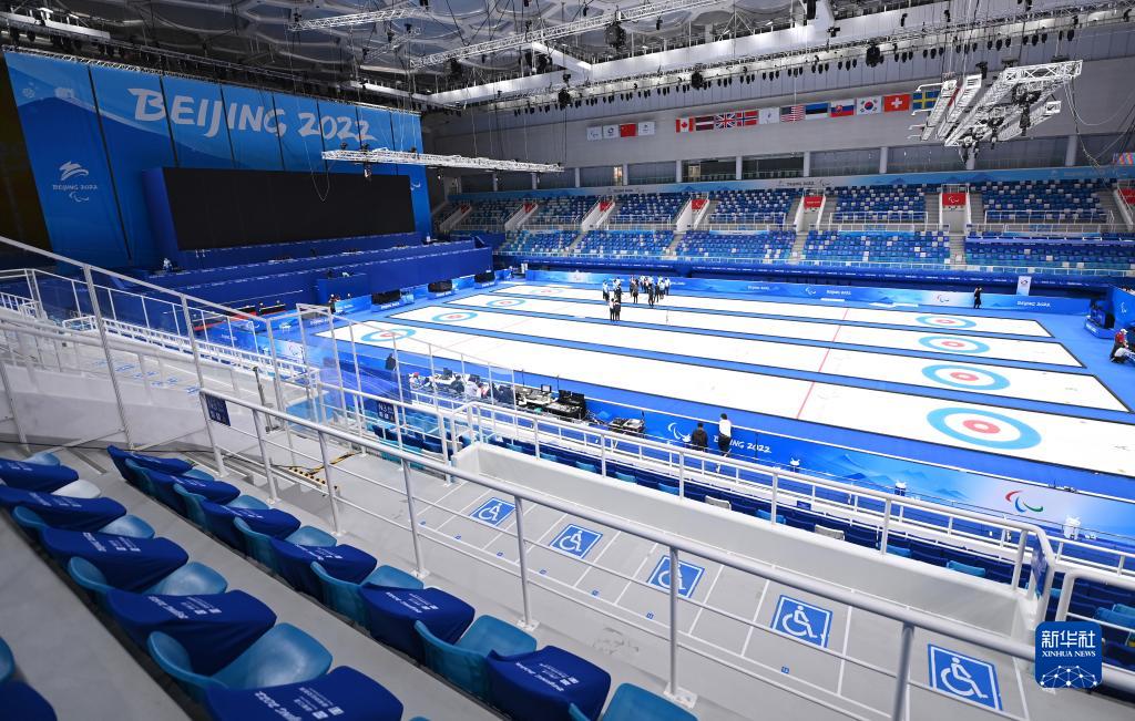 這是在國家游泳中心“冰立方”內拍攝的無障礙看臺(2022年3月1日攝)。