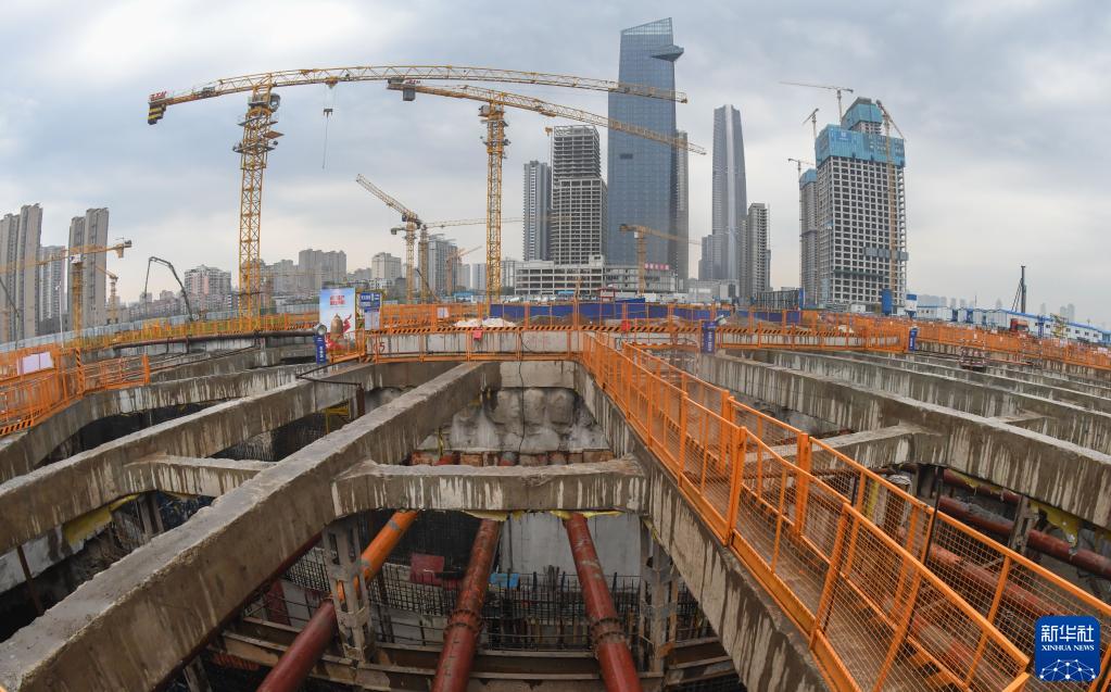 3月16日拍攝的建設中的武漢市武昌濱江核心區地下空間環路工程工地。