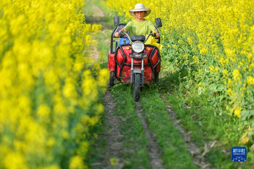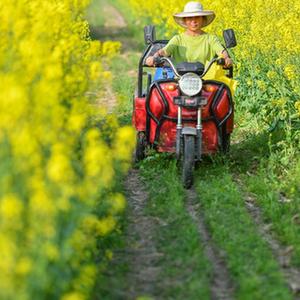 在常德市石門縣葉家坪村,葉金娥騎著三輪車裝著工具準備去勞作(3月15日攝)。
