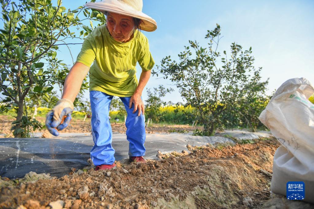 在常德市石門縣葉家坪村,葉金娥在田間施肥(3月15日攝)。