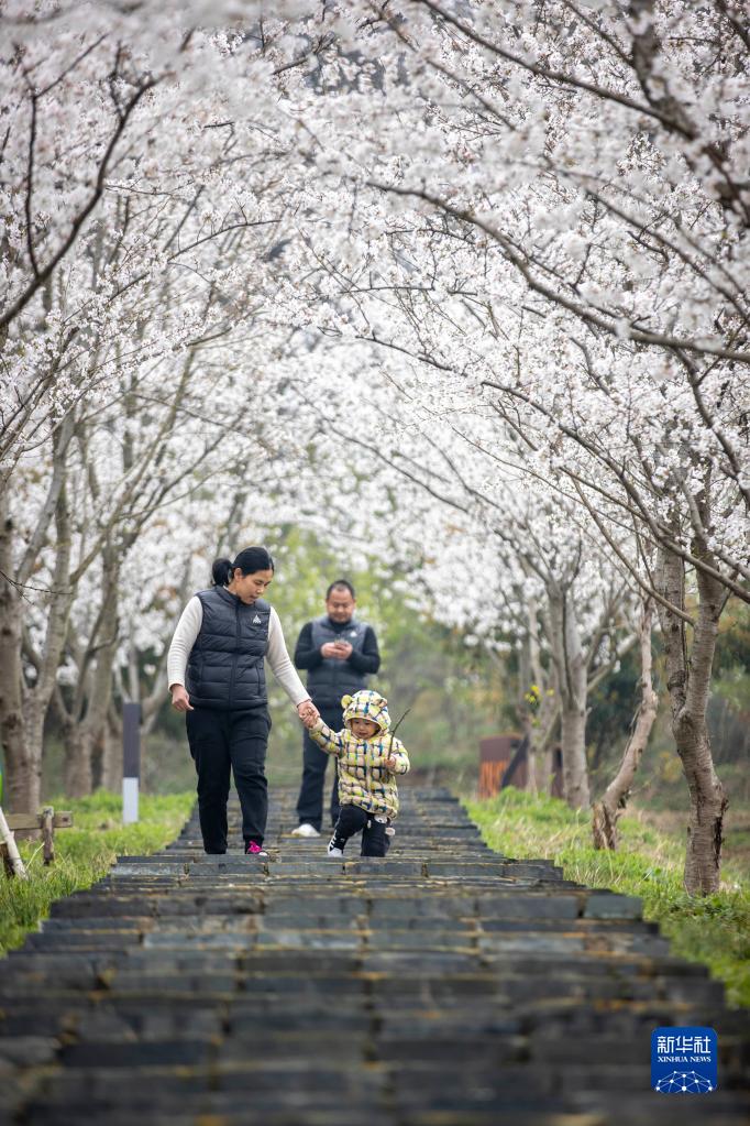 3月19日,市民在江蘇省南京市六合區平山森林公園景區踏春賞櫻。