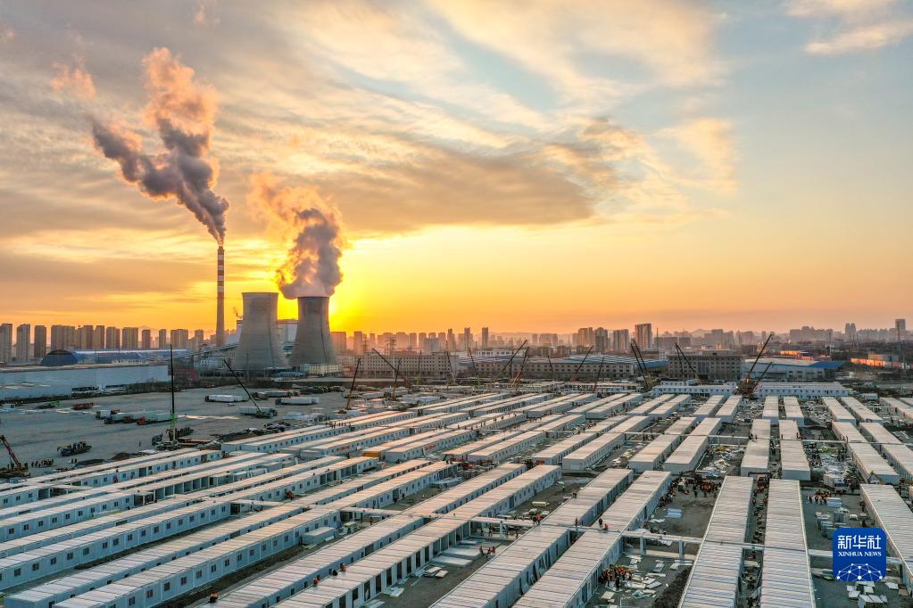 這是3月20日傍晚拍攝的吉林市高新南區隔離方艙建設現場(無人機照片)。
