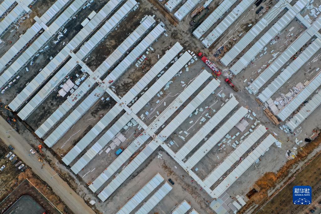 這是3月20日傍晚拍攝的吉林市高新南區隔離方艙建設現場(無人機照片)。
