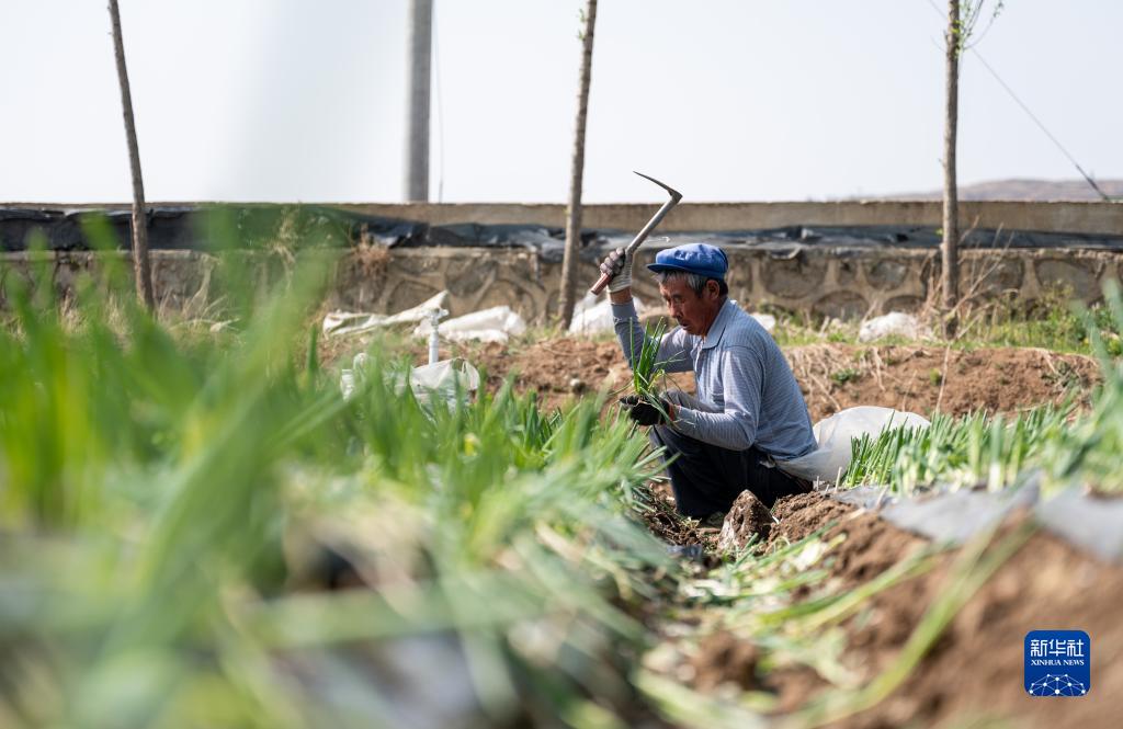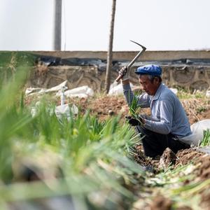 3月21日,農民在魯甸縣卯家灣安置區香蔥產業基地內勞作。