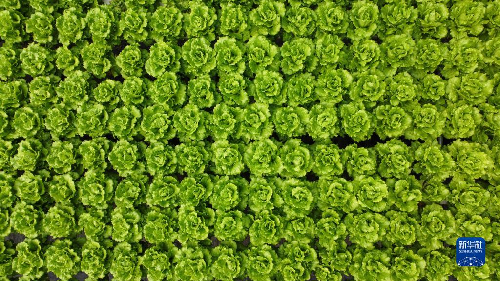 3月21日在天津市寧河區百利蔬菜種植基地拍攝的意大利生菜(無人機照片)。新華社記者 孫凡越 攝