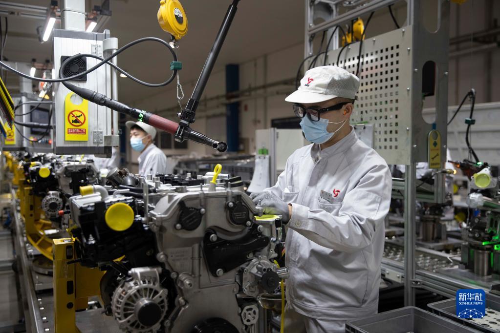 3月23日,工人在哈爾濱東安汽車動力股份有限公司生產車間內進行裝配作業。