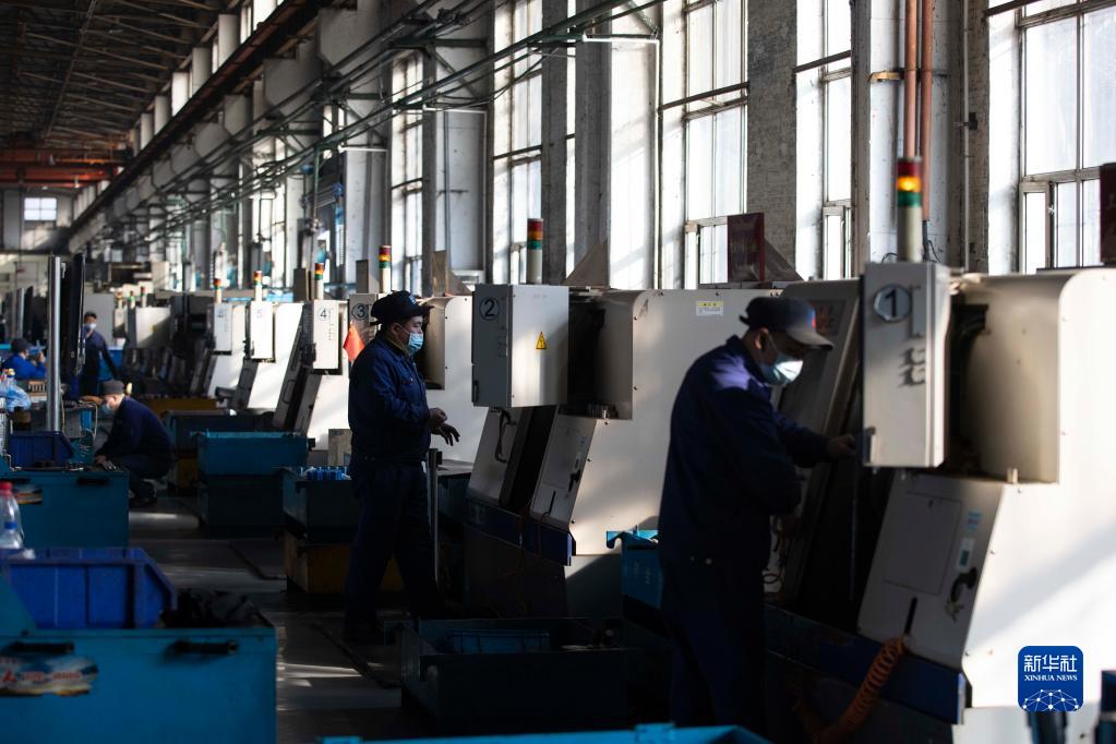 3月23日,工人在哈電集團哈爾濱電機廠有限責任公司生產車間內進行生產作業。