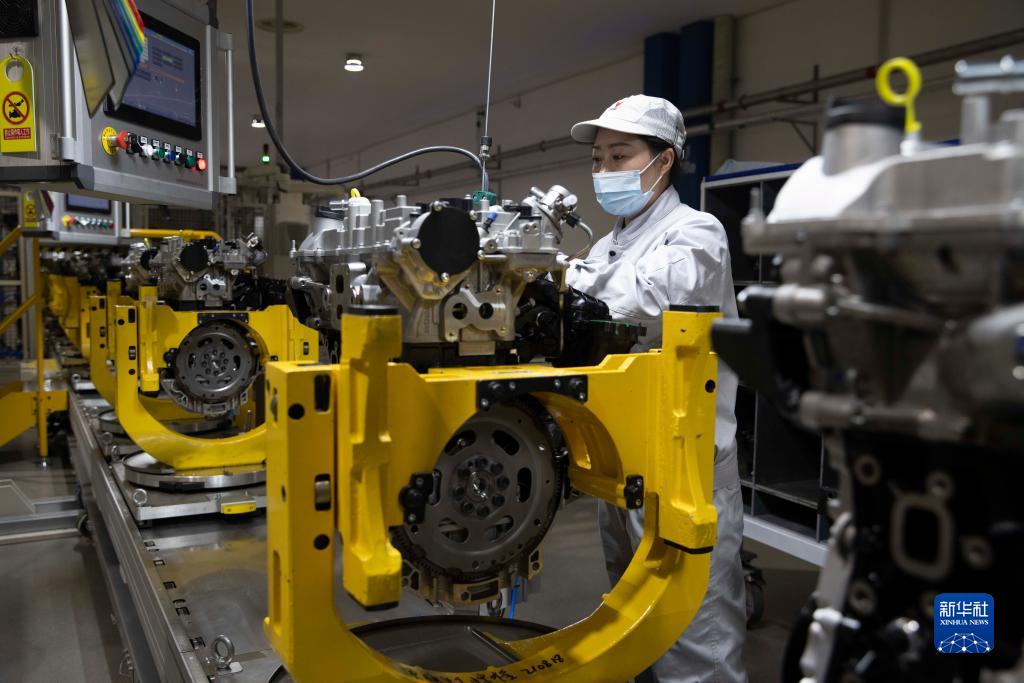 3月23日,工人在哈爾濱東安汽車動力股份有限公司生產車間內進行裝配作業。