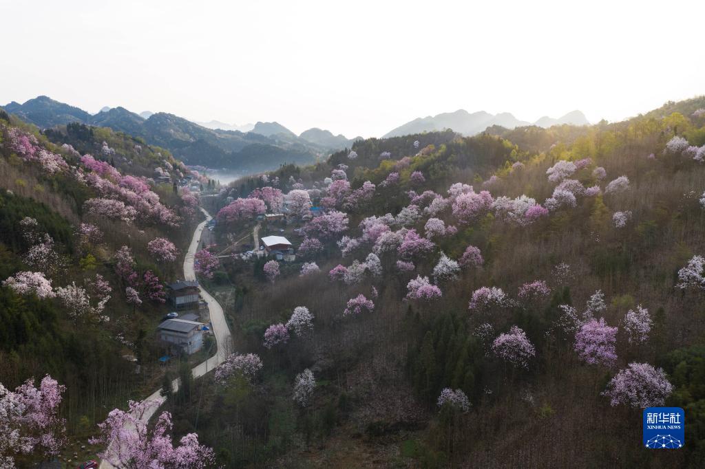 目前正是四川省江油市大康鎮戴天山村的辛夷花盛開的季節。這里的辛夷花在群山環抱中綿延數十里,呈現出一派世外桃源的景象,吸引游人前來踏青賞花。當地的農家樂旅游接待、土特產銷售等“花經濟”,促進了村民們增產增收。