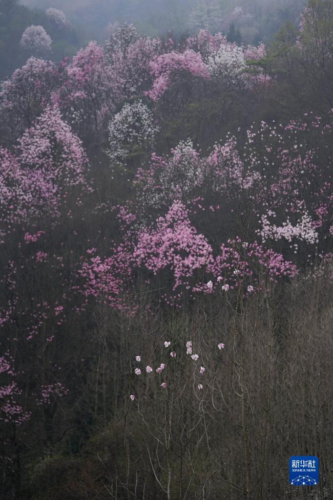 3月23日拍攝的江油市大康鎮戴天山村盛開的辛夷花。