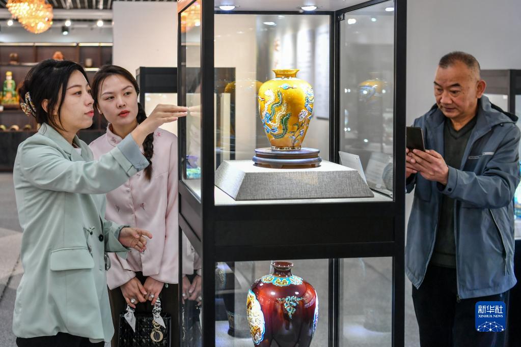 3月24日,在山西省陽城縣沙坡村,喬琳(左一)為客戶介紹琺華。新華社記者 曹陽 攝