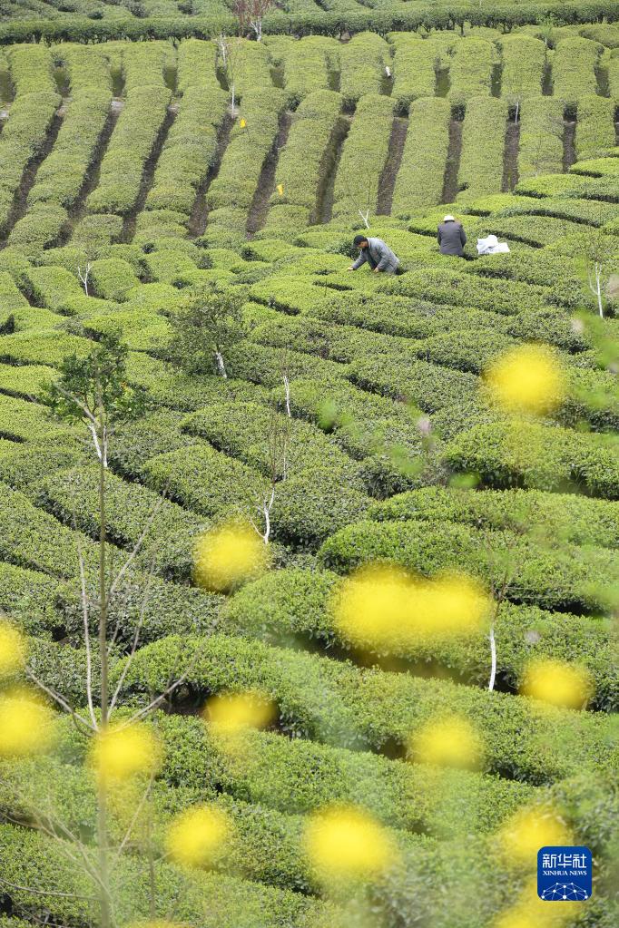 3月24日,茶農在湖北省宜昌市秭歸縣茅坪鎮松樹坳村一茶園采摘明前茶。