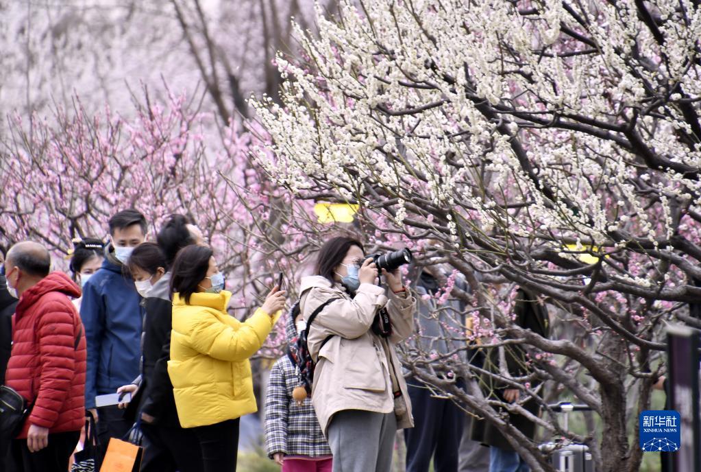 近期,北京市明城墻遺址公園內桃花盛開,吸引大批市民前來賞花踏青。