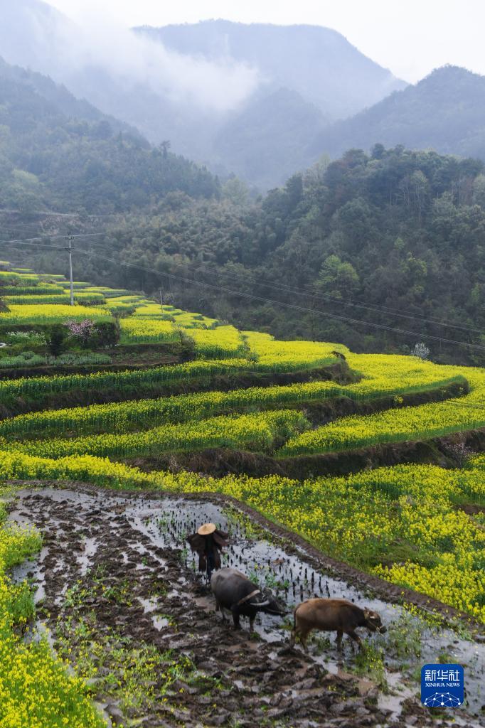 乾潭鎮胥嶺村是典型的江南山鄉古村落,這里的400多畝梯田種滿油菜花。本次春季花朝節展現了傳統農耕文化魅力,利用農文旅交融促進全域旅游發展、助力共同富裕。