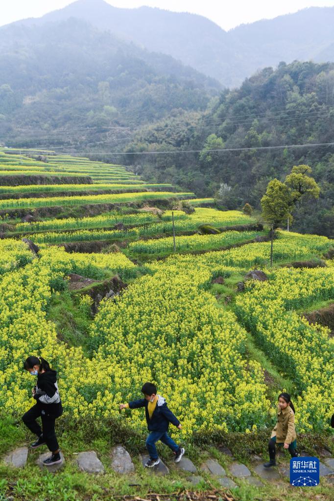 當日,浙江省建德市乾潭鎮胥嶺村開啟首屆“花朝節”,市民和游客在胥嶺村觀賞油菜花,體驗胥嶺古道和“花朝市集”。