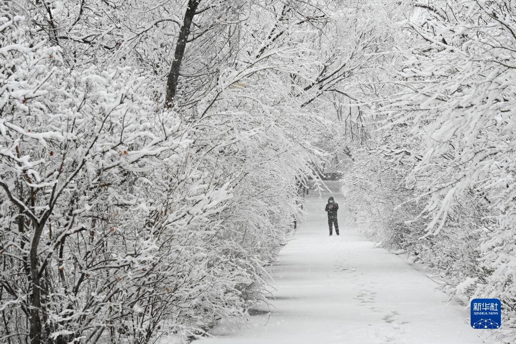 3月30日,游客在烏魯木齊市水磨溝公園賞雪。