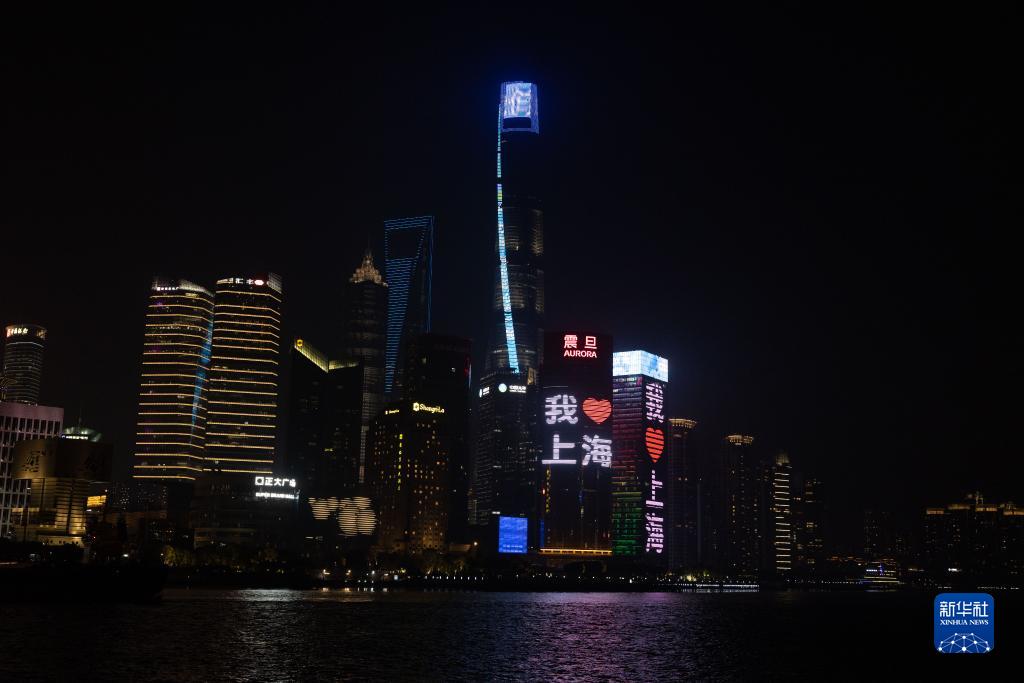 3月31日晚,上海外灘的大屏上顯示出“我愛上?!钡臉苏Z。