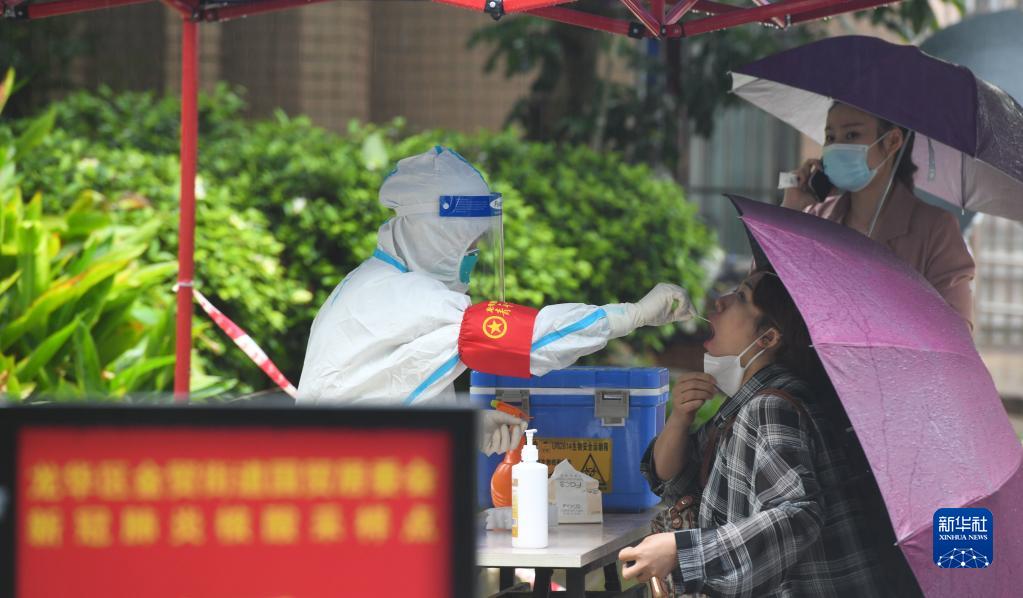 4月1日,在??谑旋埲A區金貿街道國貿社區新冠肺炎核酸采樣點,居民接受核酸采樣。