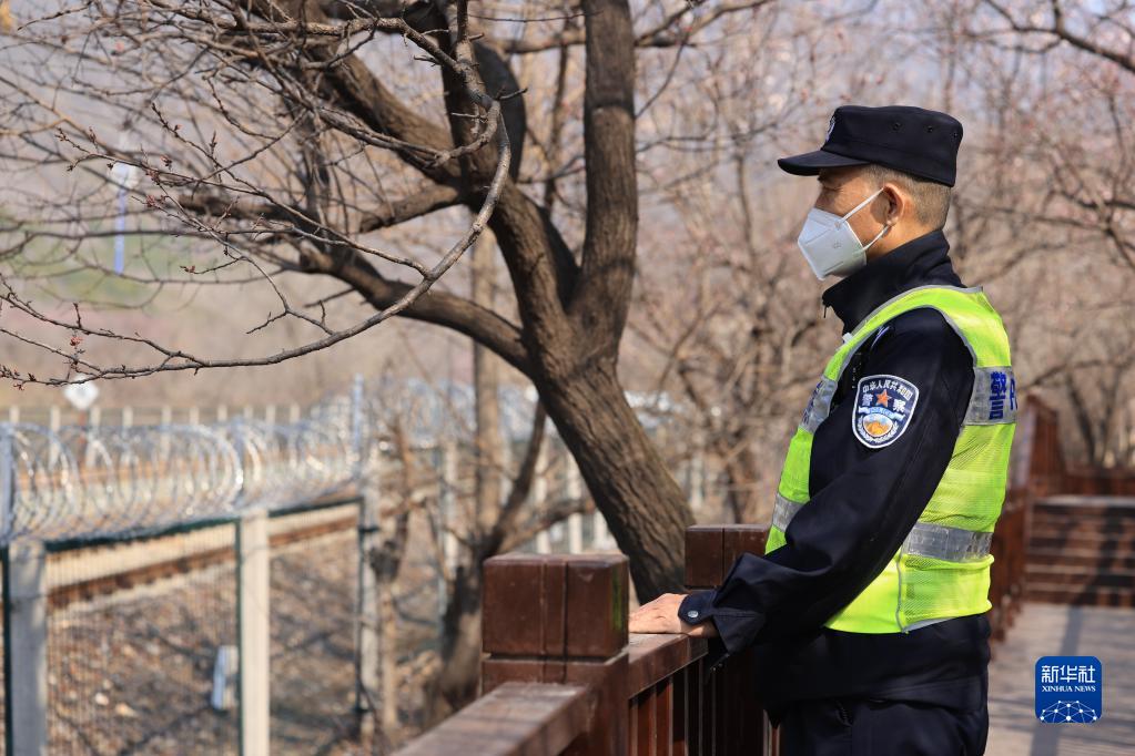 北京市郊鐵路S2線的列車穿梭于居庸關長城腳下的花海,是春日里的一道風景。北京鐵路公安處安排轄區民警加強值守,確?;êA熊嚭陀慰偷陌踩?。