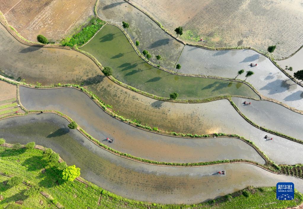 隨著天氣回暖,農民搶抓農時開展農事活動,春日田園一派生機勃勃的景象。