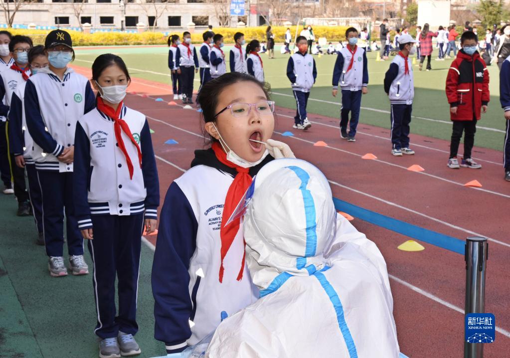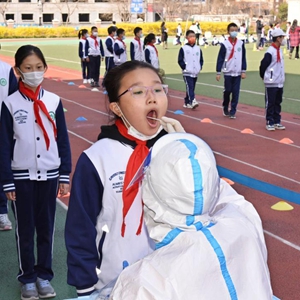 當日,山東青島部分學校組織師生進行核酸采樣工作,為恢復線下教學做準備。