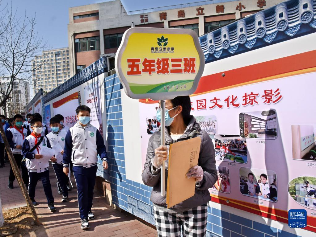 當日,山東青島部分學校組織師生進行核酸采樣工作,為恢復線下教學做準備。