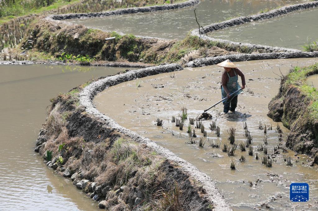 4月10日,村民在貴州省黔東南苗族侗族自治州從江縣剛邊鄉剛邊村田間勞作。