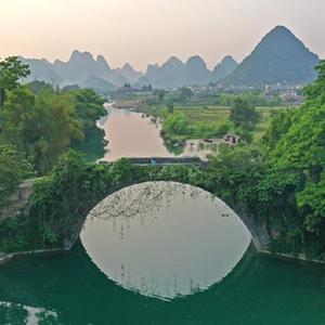 這是廣西陽朔遇龍河沿岸景色(4月11日攝,無人機照片)。