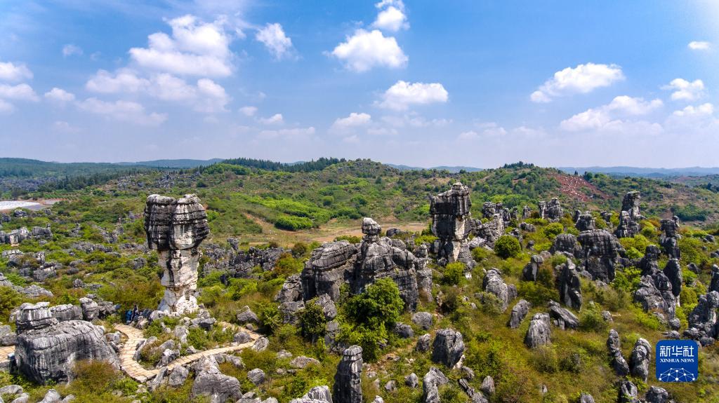 這是4月10日拍攝的“萬年靈芝”石林景觀(無人機照片)。