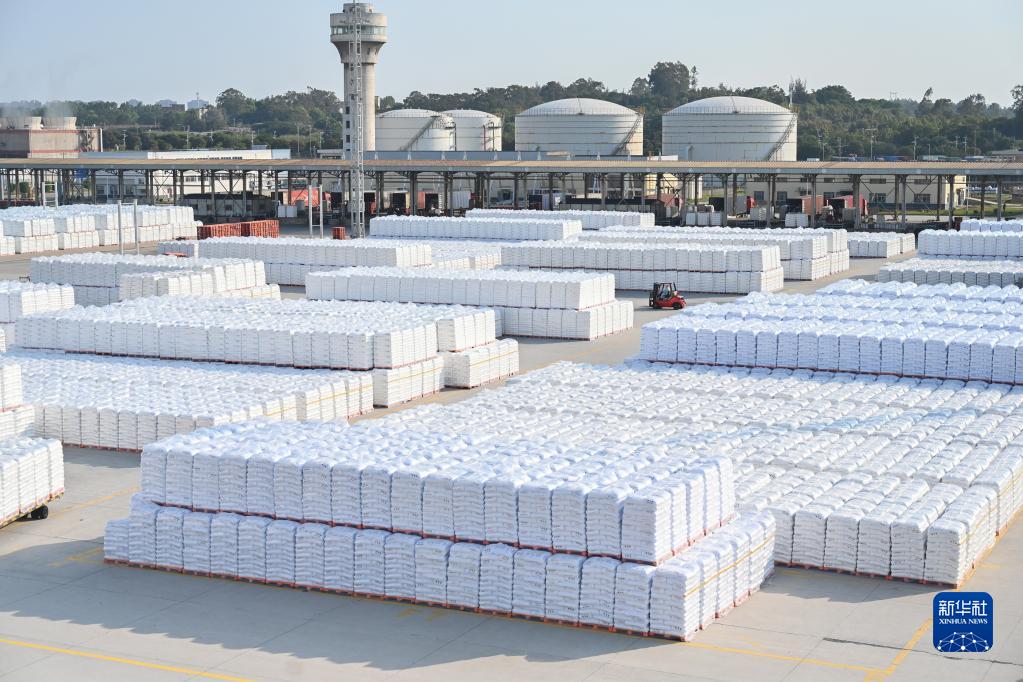 4月12日,在福建泉州泉港區的一家石油化工企業,工人駕駛車輛運輸貨物。