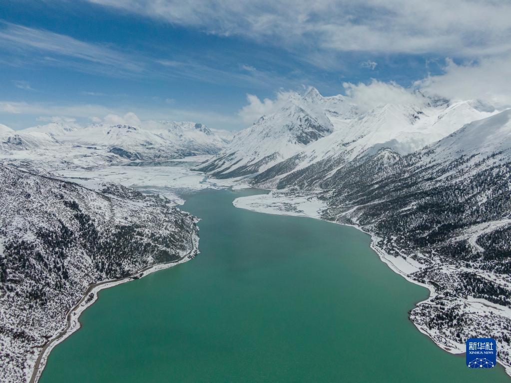 這是無人機拍攝的然烏湖(4月18日攝)。