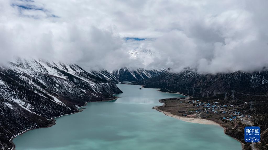 這是無人機拍攝的然烏湖(4月24日攝)。