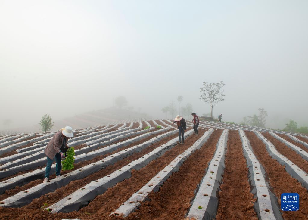 4月26日,漢中市略陽縣郭鎮譚家莊村農民在田間勞作。