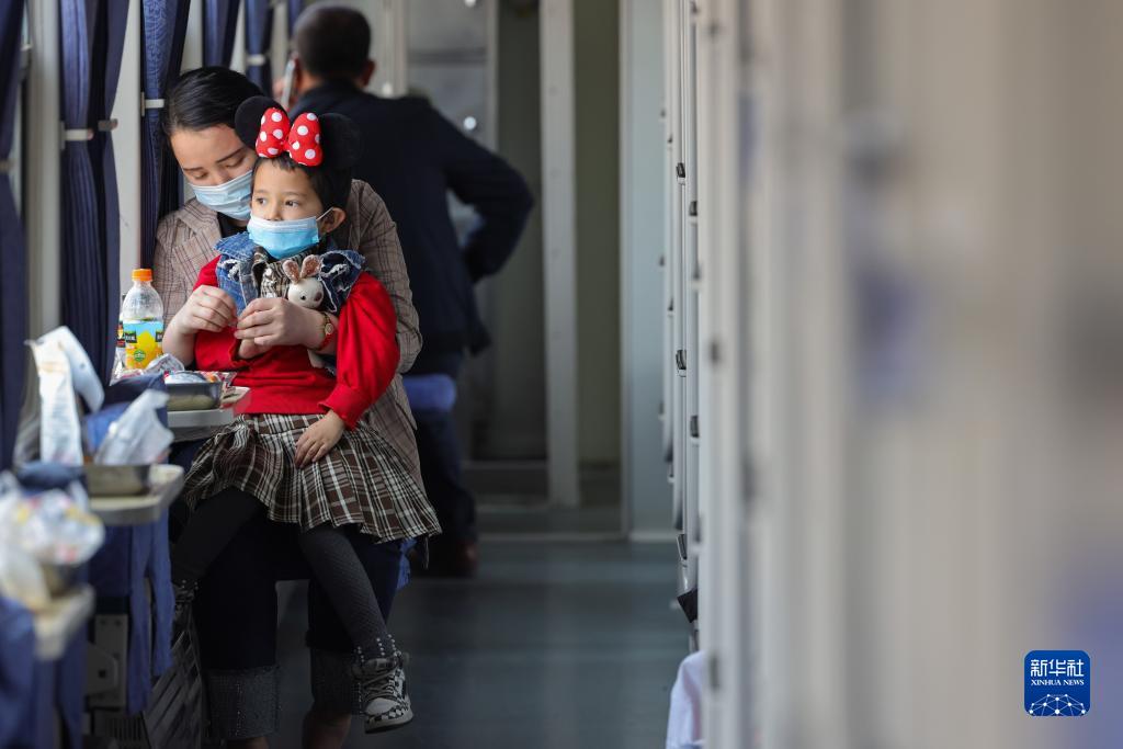 在開往和田方向的“和田玉龍號”列車上,乘客在車廂內休息(4月27日攝)。
