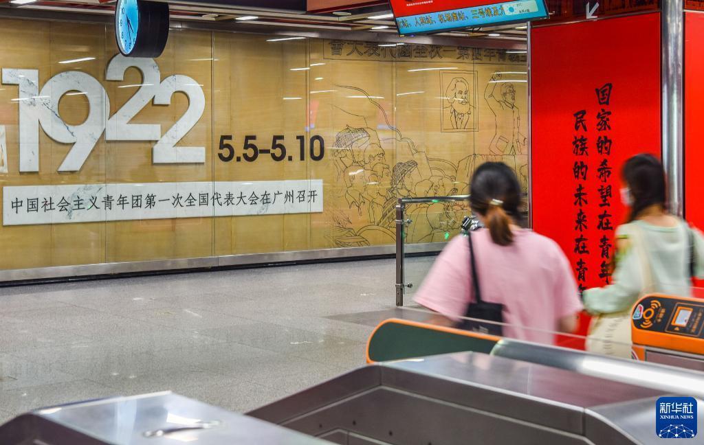 5月3日,修建在團一大會址附近的廣州地鐵團一大廣場站內的“中國社會主義青年團第一次全國代表大會”主題壁畫。