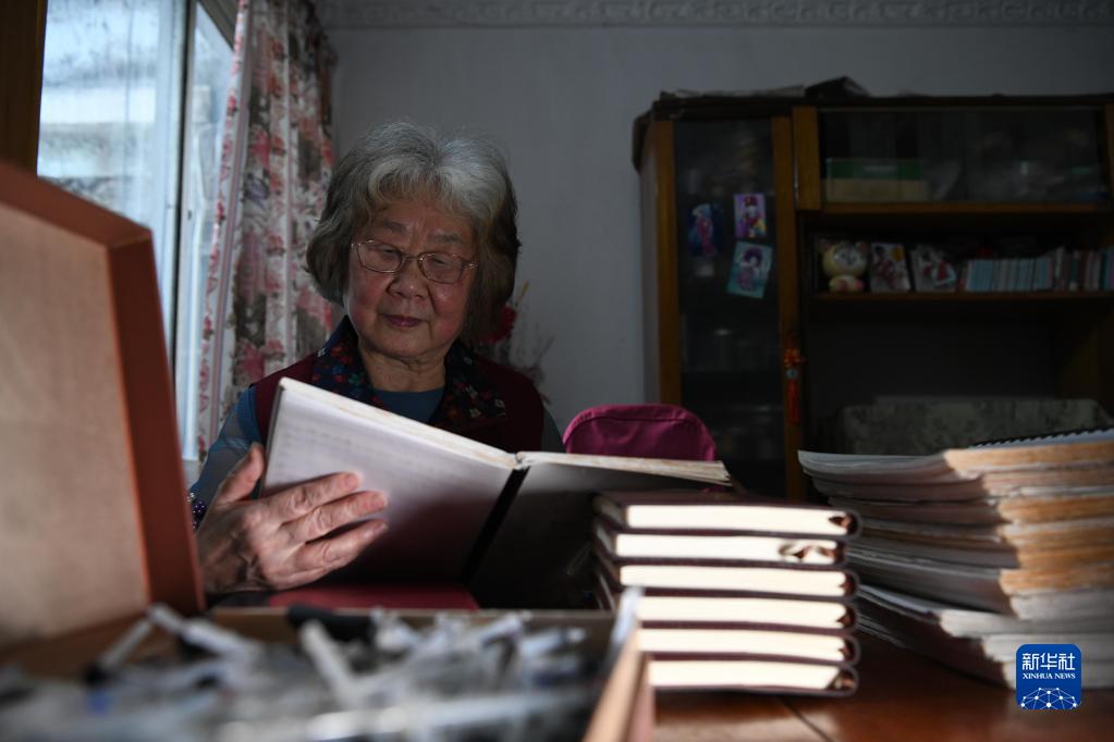 5月17日,張愛蘭在安徽蕪湖的家中翻看她寫的小說手稿《繾綣曲》。
