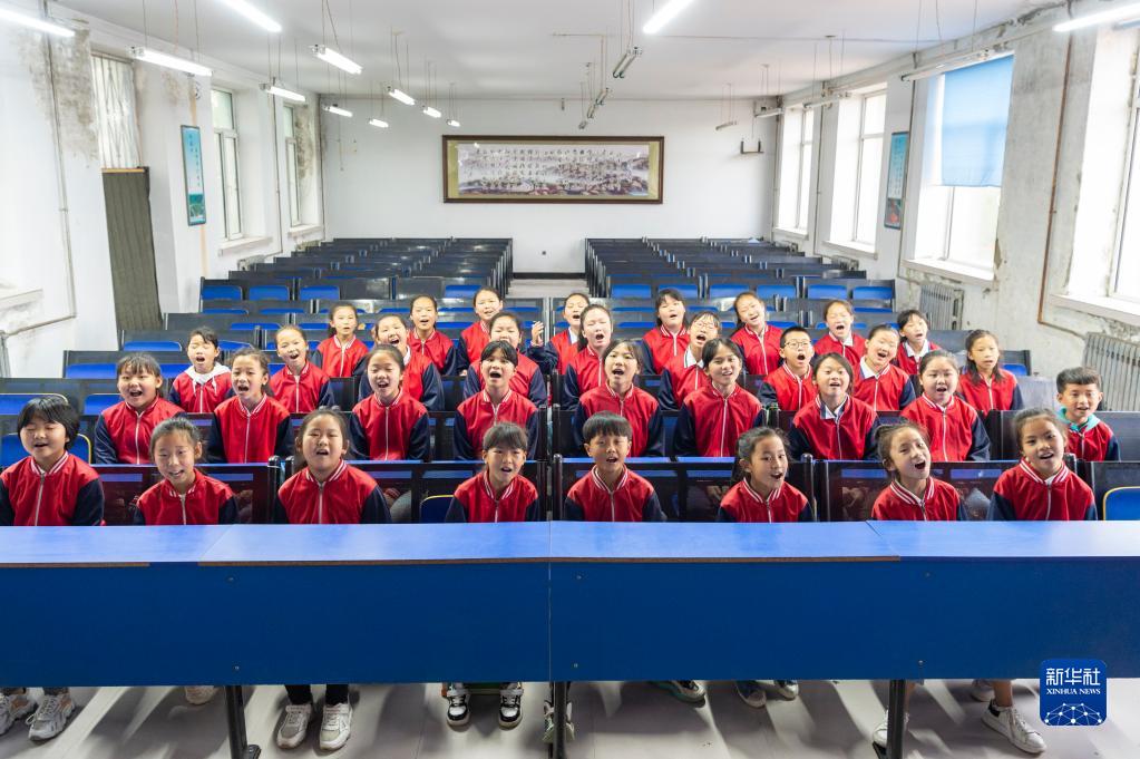5月24日,在黑龍江省安達市任民鎮中心小學,“村里的孩兒”音樂班的孩子練習合唱。