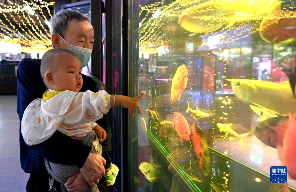 市民在西安際華3511文創科技園內的魚市觀賞游玩(5月20日攝)。