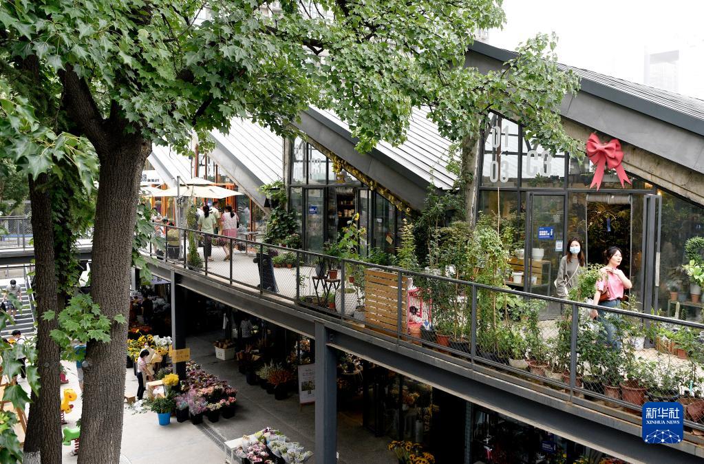 5月29日,市民在西安際華3511文創科技園內休閑。
