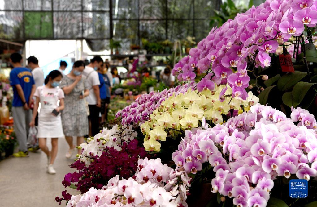 5月29日,市民在西安際華3511文創科技園內的花市休閑。