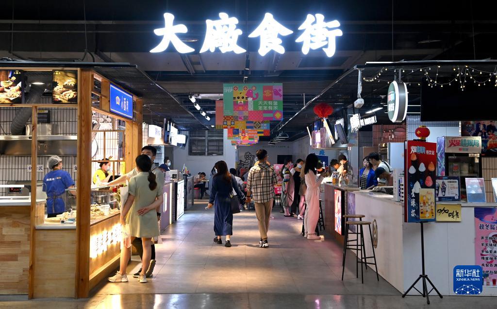 市民在西安際華3511文創科技園就餐(5月20日攝)。