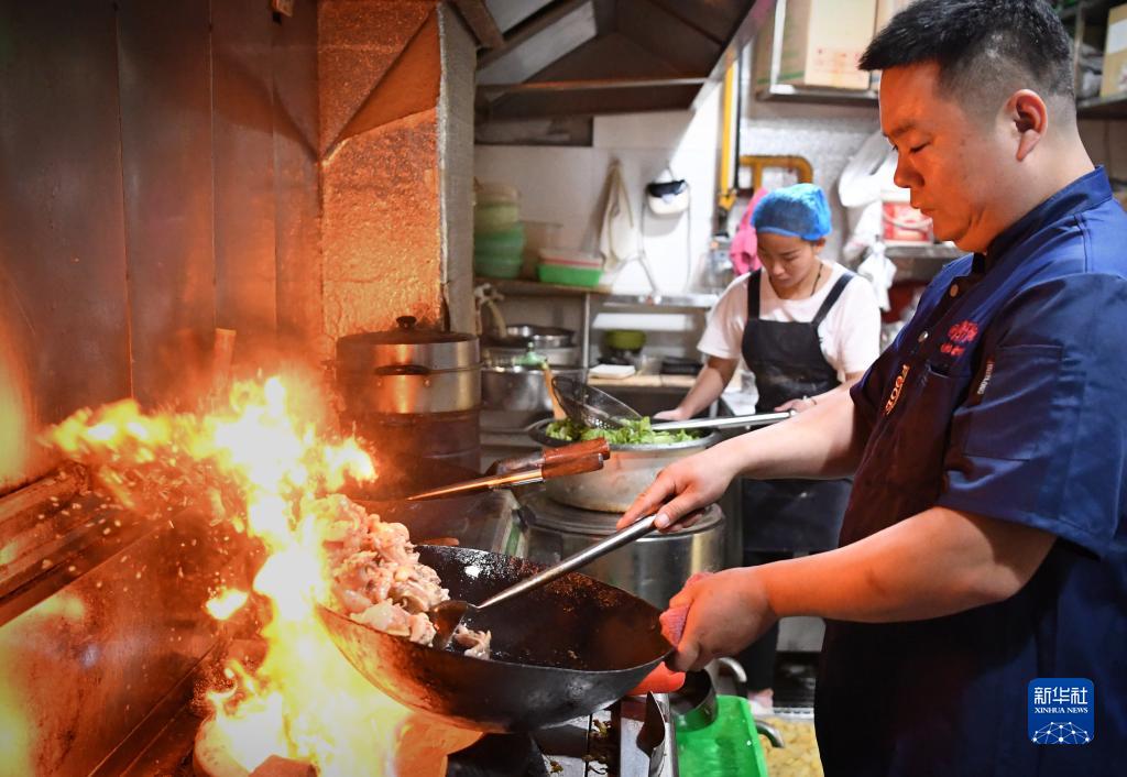 張占領在位于鄭州市二七區的店鋪內制作炒雞(5月31日攝)。