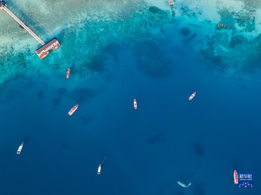 這是2019年7月7日拍攝的馬來西亞丁加奴州浪中島沿岸風光(無人機拍攝)。