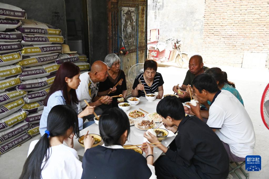 6月7日,在衛輝市劉板橋村,劉建儒一家在吃豐收飯。