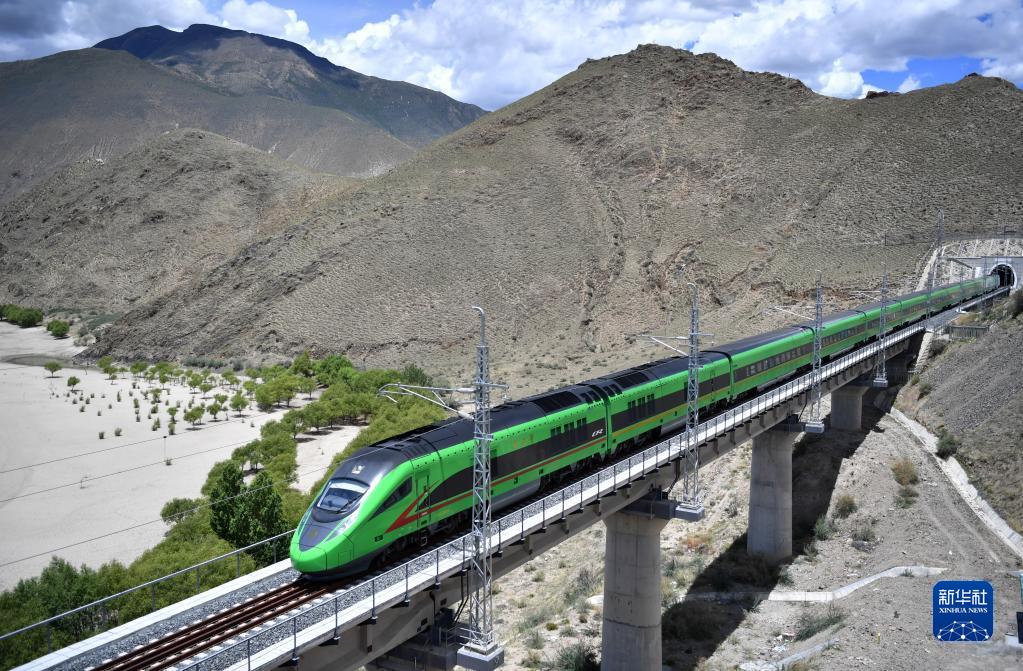 6月22日,復興號列車行駛在西藏山南境內。