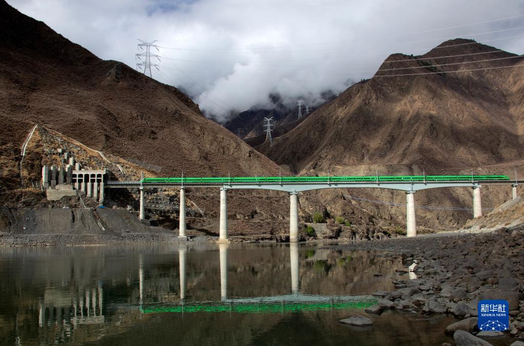 4月14日,復興號列車行駛在西藏朗縣境內的雅魯藏布江上。
