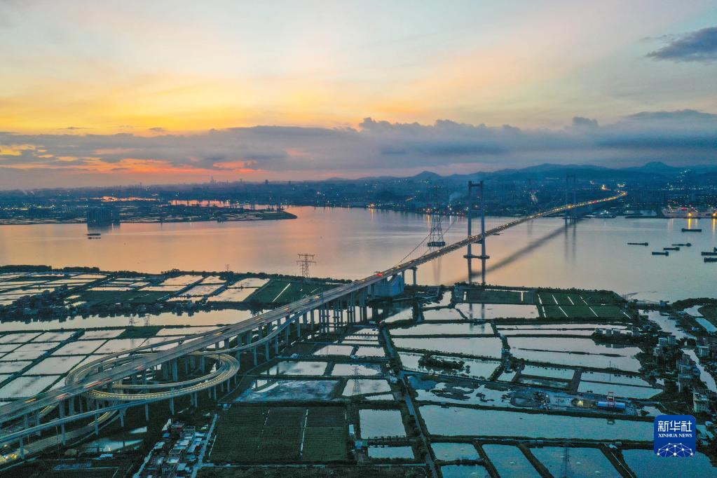 南沙大橋坭洲水道橋(6月29日攝,無人機照片)。南沙大橋上跨珠江口獅子洋水域,連接廣州市南沙區東涌鎮、番禺區海鷗島和東莞市沙田鎮。