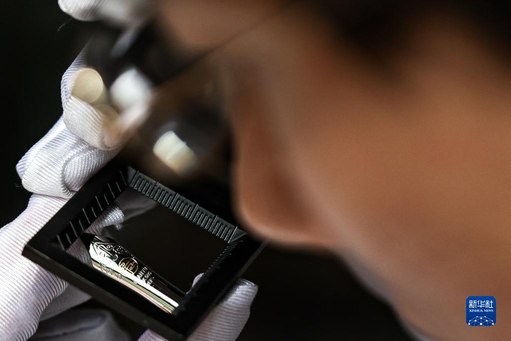 7月1日,袁建在位于貴州大學國家大學科技園的工作室用放大鏡查看鋼筆的筆尖成品。