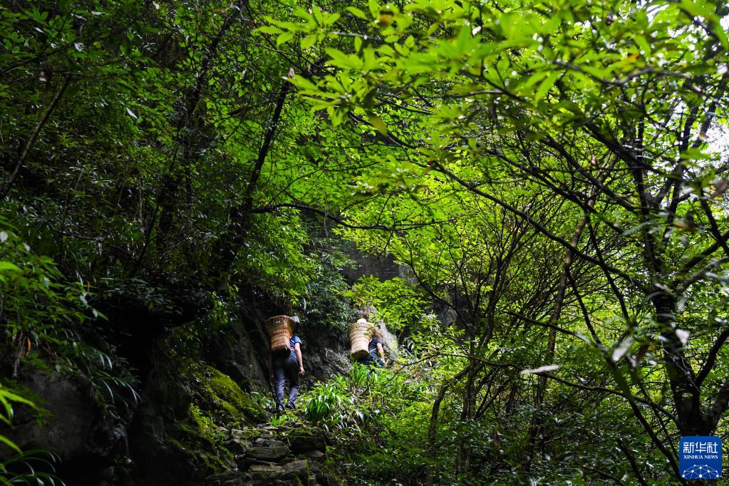 7月6日,工作人員行進在重慶五里坡國家級自然保護區內。